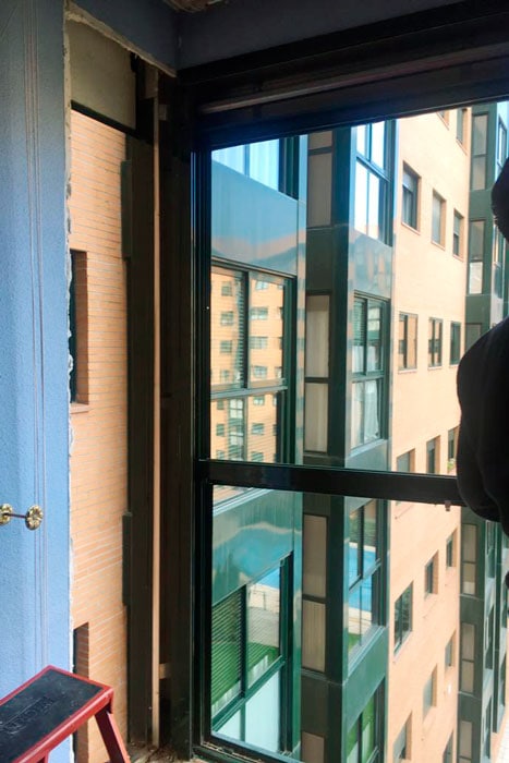 El cliente requería unas condiciones estéticas específicas para que la nueva instalación no rompiera con la línea decorativa ni de la fachada ni de la propia vivienda. Se instalaron perfiles de PVC bicolor, verde en el exterior y blanco en la parte interior. A su vez, las persianas de aluminio instaladas presentaban lamas bicolor.